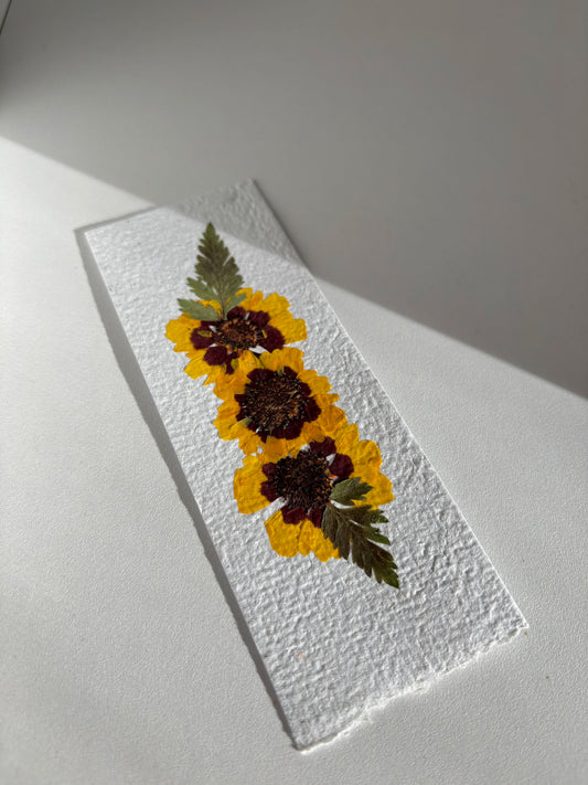 Chaque marque-page, est fabriqué avec notre papier recyclé, ensemencé de fleurs sauvages, et orné de fleurs pressées : une belle façon de marquer tes lectures tout en semant la vie.