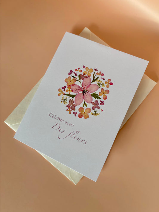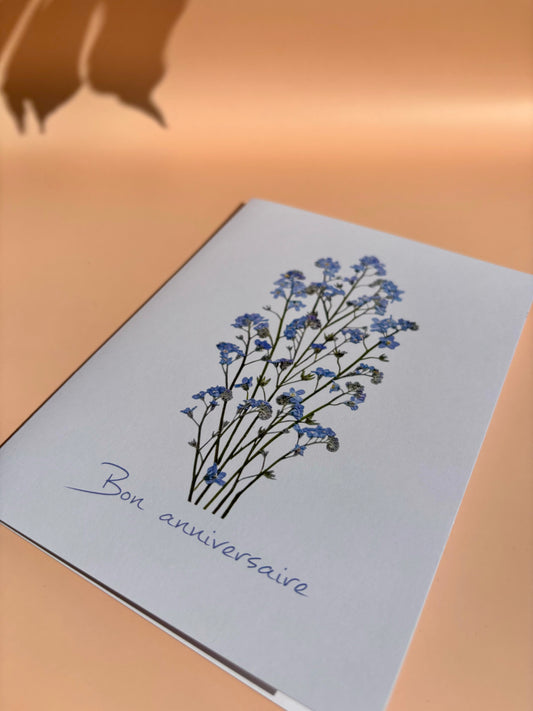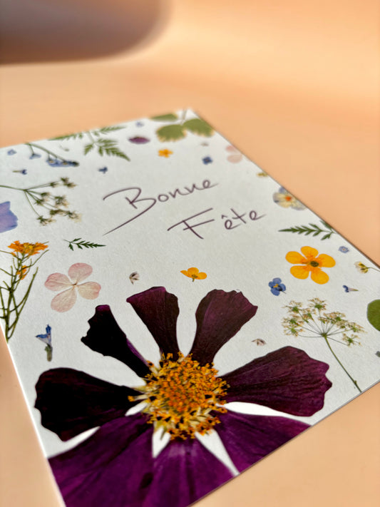 Discover our collection of birthday greeting cards. Each card is a digital reproduction of original works, made from pressed flowers.