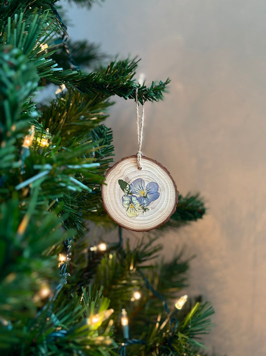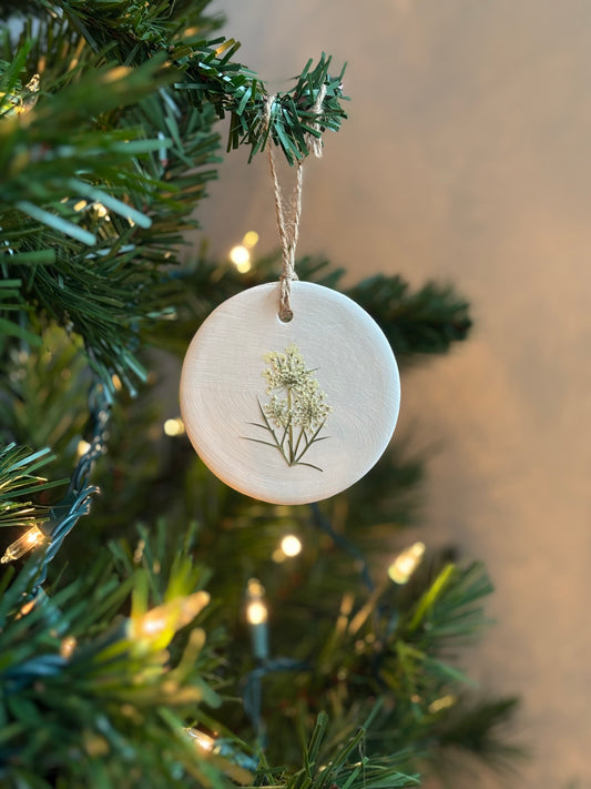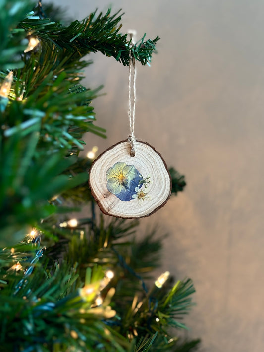 Chaque ornement met en valeur de véritables fleurs pressées, récoltées et séchées avec soin. Bois ou céramique, chaque pièce est unique et créée à partir de fleurs que nous cultivons et cueillons nous-mêmes.