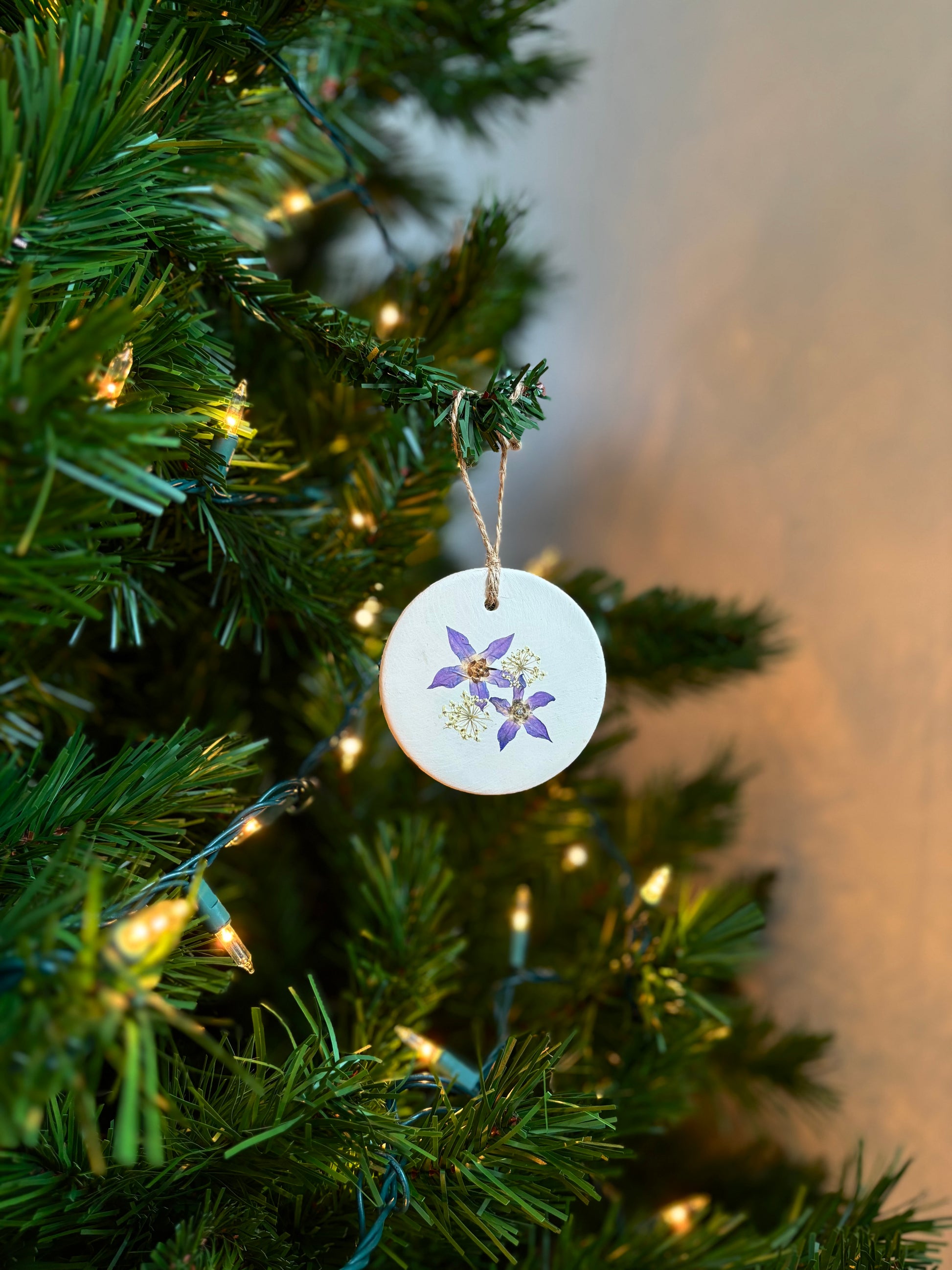 Les fleurs utilisées pour cet ornement ont été cultivées, cueillies et pressées avec soin. Comme toutes les fleurs naturelles, elles peuvent changer légèrement au fil du temps. Pour préserver leurs couleurs, il est préférable d’éviter le soleil direct et l’humidité.
