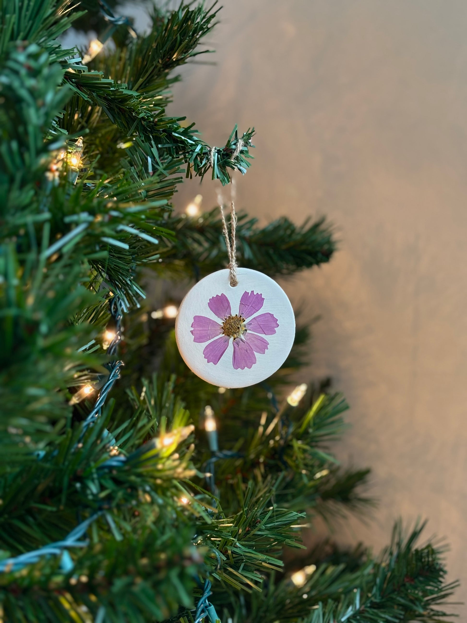 Les fleurs utilisées pour cet ornement ont été cultivées, cueillies et pressées avec soin. Comme toutes les fleurs naturelles, elles peuvent changer légèrement au fil du temps. Pour préserver leurs couleurs, il est préférable d’éviter le soleil direct et l’humidité.
