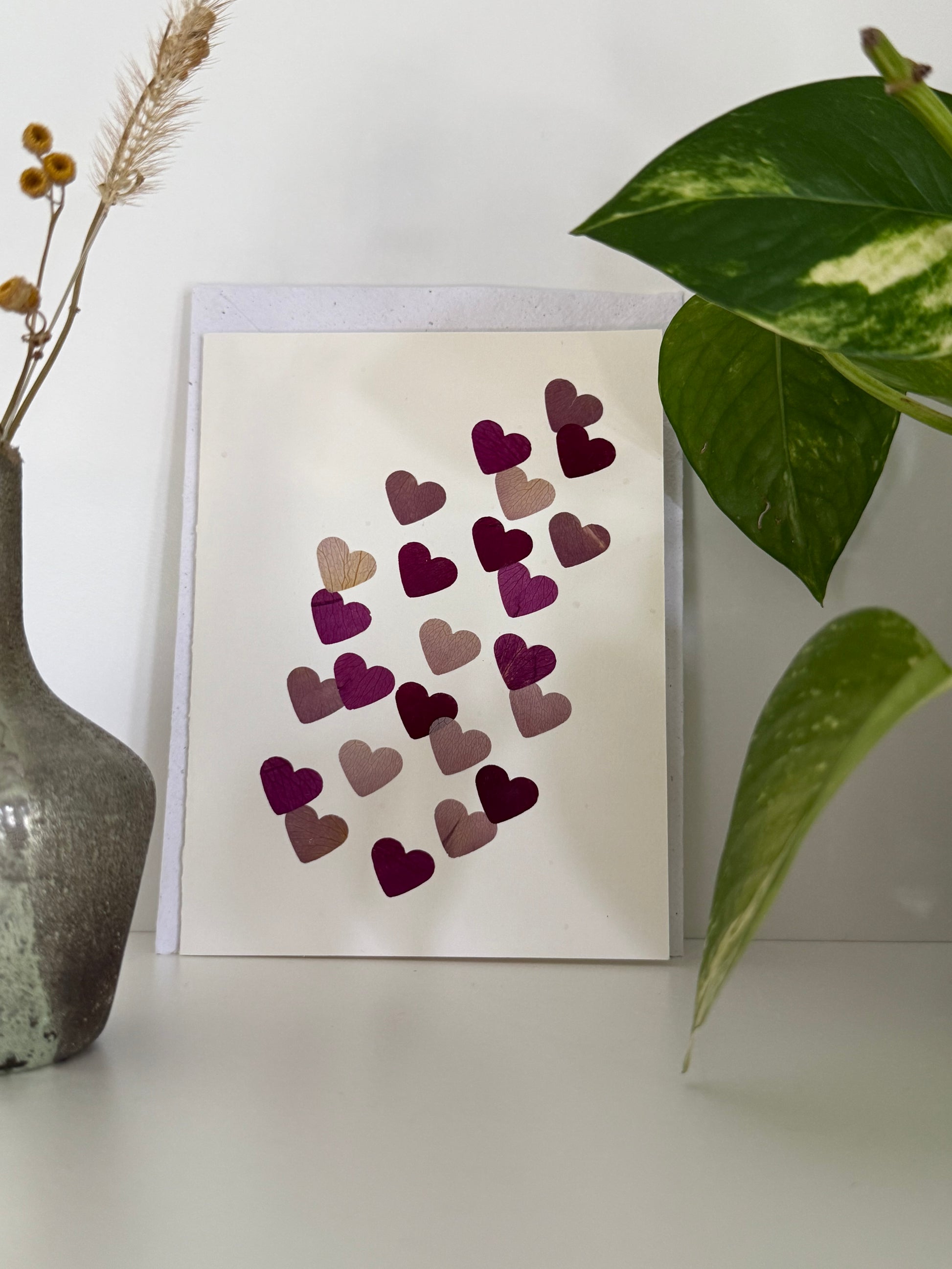 Cœurs - Carte de Fleurs Pressées